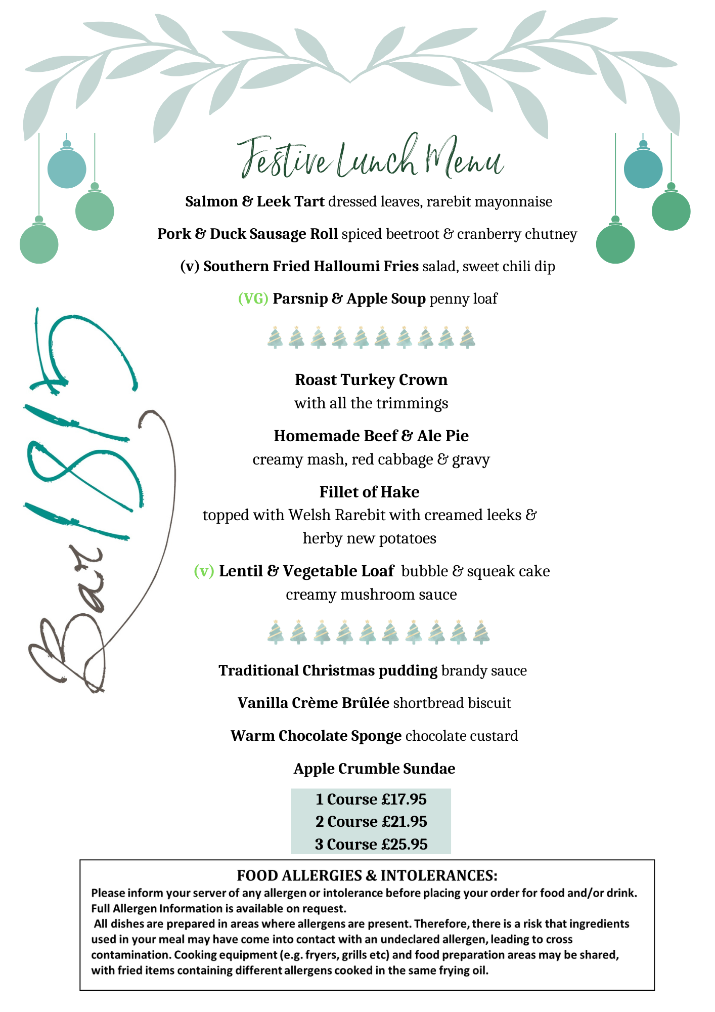 Festive Daily Lunch Menu is served Tuesdays – Saturdays 12-3pm in Bar1815, bring your friends, colleagues or family and enjoy a festive feast!